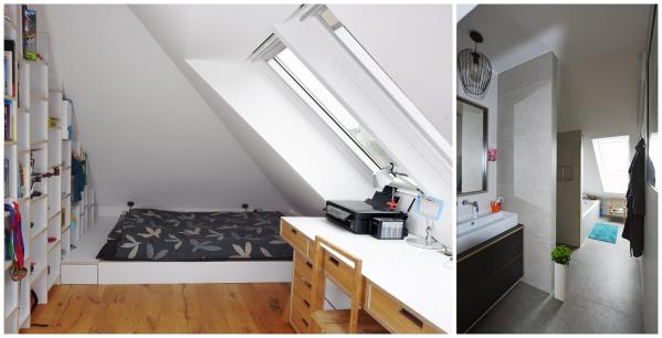 IZDELEK VELUX UPORABLJEN V PROJEKTU: Vgradnja dveh oken z vmesnim tankim nosilcem. Z uporabo tipskega nosilca se stanjša stik med oknoma, ki tako delujete enotnejše. Pridobi se več višine nad delovno mizo.