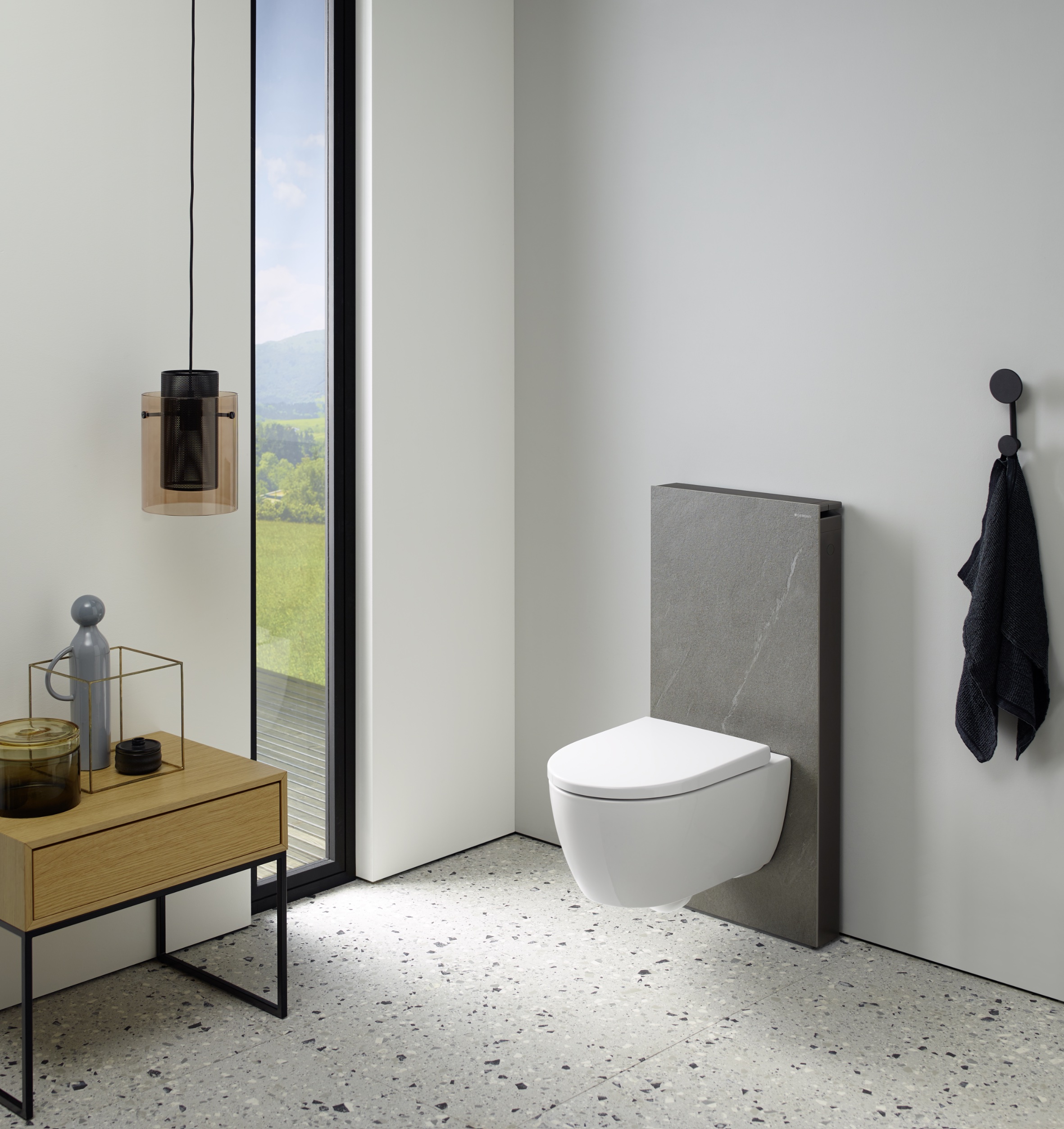 Nove, trendovske barve za oblogo sanitarnih modulov Geberit Monolith in Geberit Monolith Plus razširjajo možnosti oblikovanja v kopalnici. Sprednja obloga iz stekla je na voljo v dveh novih barvah – peščeno sivi in barvi lave. Prav tako so steklene obloge še vedno na voljo v črni, beli in mint barvi. Sedaj je mogoča izbira tudi dveh povsem novih front – iz keramike v videzu betona in keramike v videzu skrilavca. Zahvaljujoč njihovi unikatnosti je vsaka fronta edinstvena. Poleg novih barv stekla in variante keramične obloge v videzu skrilavca ter betona smo sanitarni element Geberit Monolith v skladu s sodobnimi smernicami oblikovanja osvežili in dodali še bočne aluminijaste panele v barvi črnega kroma.